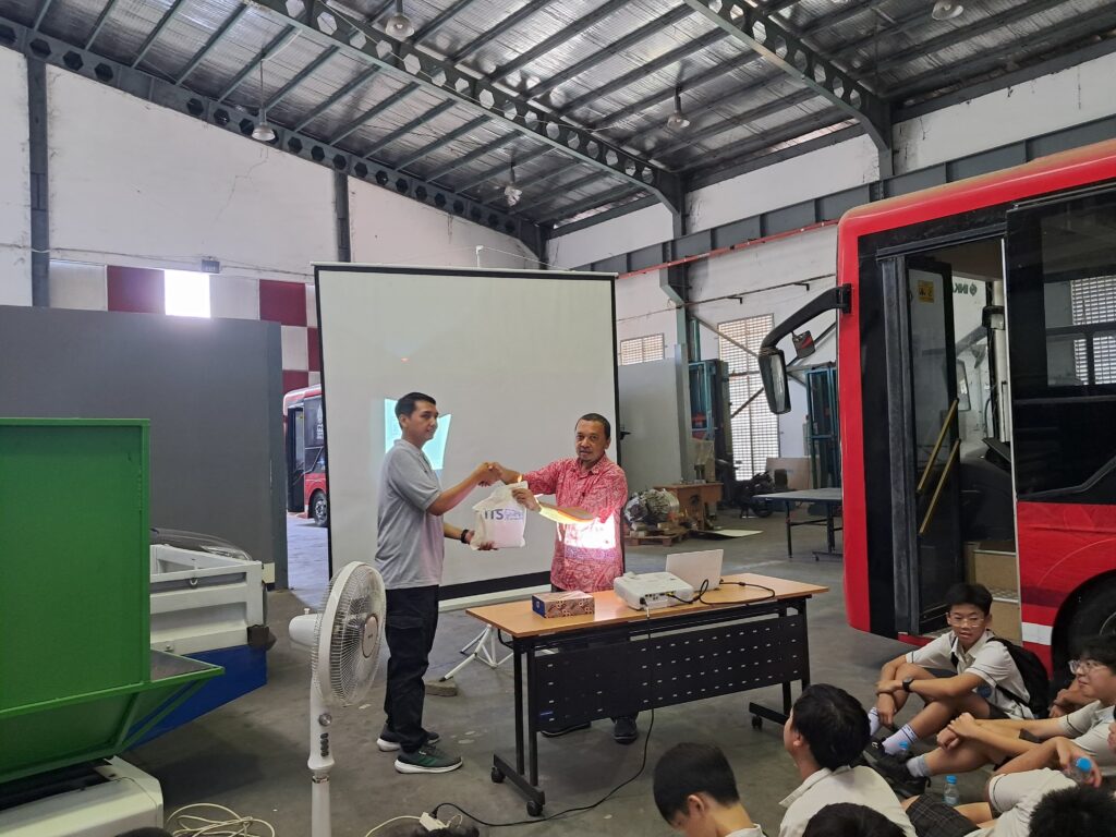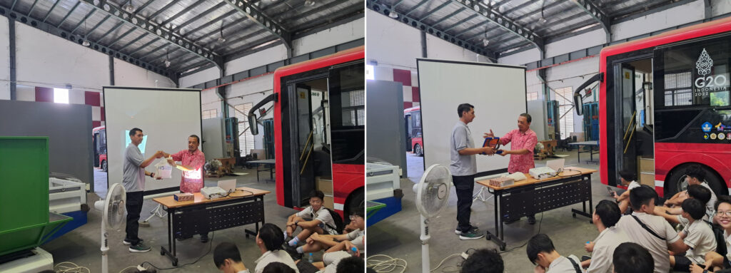 Setelah sambutan dan pemaparan materi oleh Prof. Bambang Sudarmanta, selaku Manajer STP Otomotif, acara dilanjutkan dengan prosesi penyerahan cinderamata. Dalam kesempatan ini, pihak STP Otomotif dan perwakilan guru dari SMP Nation Star Academy saling bertukar cinderamata sebagai tanda penghargaan atas kunjungan tersebut. Pertukaran ini berlangsung dalam suasana yang hangat dan penuh kebersamaan, melambangkan hubungan baik serta kolaborasi yang terjalin antara kedua institusi.