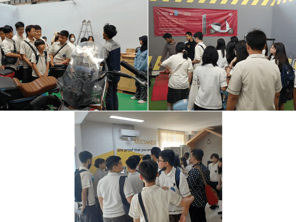 Dokumentasi kunjungan siswa SMP Nation Star Academy dalam mengamati proses konversi sepeda motor dan produk-produk inovatif yang dihasilkan oleh STP Otomotif.