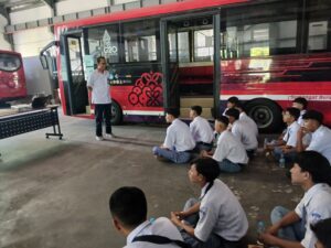 Antusiasme peserta terlihat jelas sepanjang kegiatan. Para siswa aktif mendengarkan, mencatat, hingga bertanya mengenai teknologi kendaraan listrik dan peluang karier di bidang tersebut.