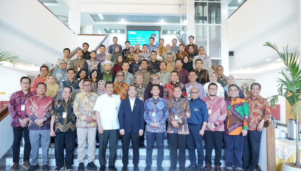 Para peserta Forum Wakil Rektor (Forwarek) Bidang Kerja Sama PTN – ISI se-Indonesia 2025 bersama Mendiktisaintek RI Prof Brian Yulianto PhD di Gedung Rektorat ITS