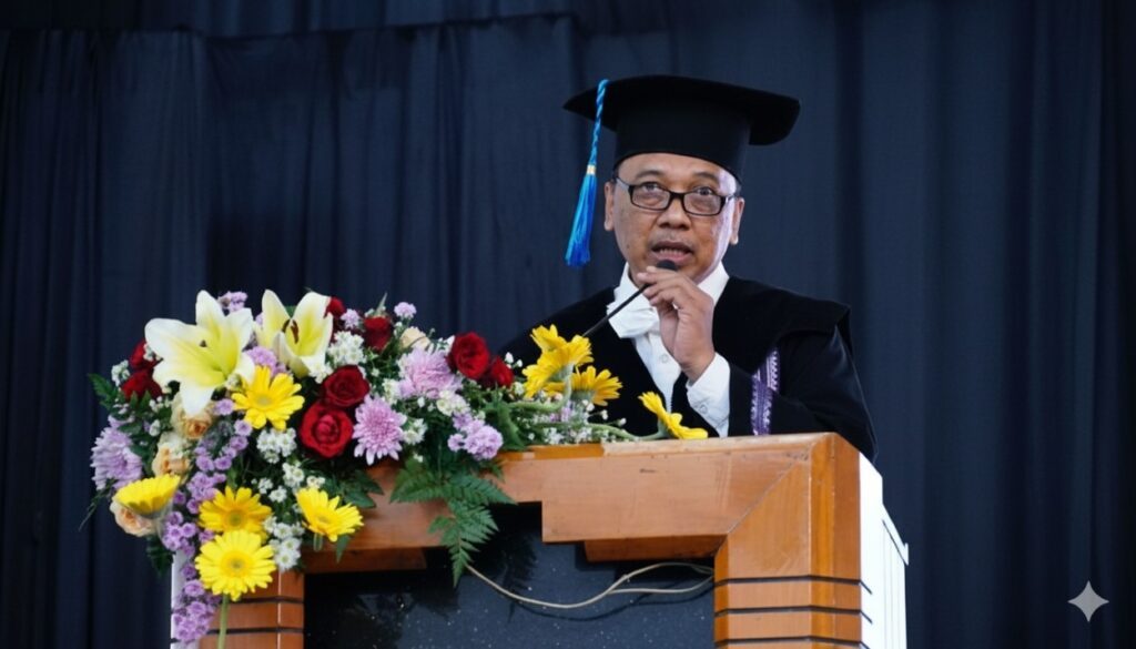 Prof Dr Ir Bambang Sudarmanta ST MT IPM AEng ketika menyampaikan orasi ilmiahnya dalam acara Pengukuhan Profesor ITS