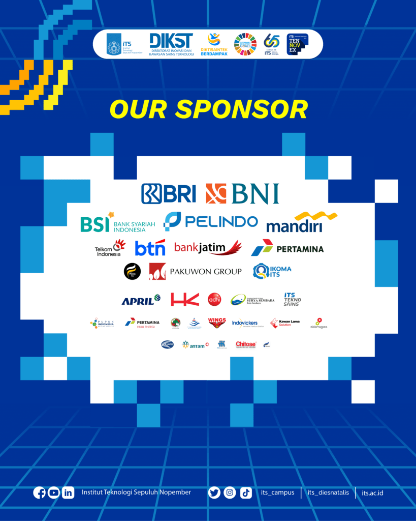 Ajak tim, teman, dan keluarga untuk merasakan pengalaman inovasi yang dekat dengan kehidupan sehari-hariโ€”Creating Impact bersama ITS. Terima kasih kepada seluruh sponsor dan mitra yang mendukung penyelenggaraan TENNOVEX 2025. Sampai jumpa di lokasi!