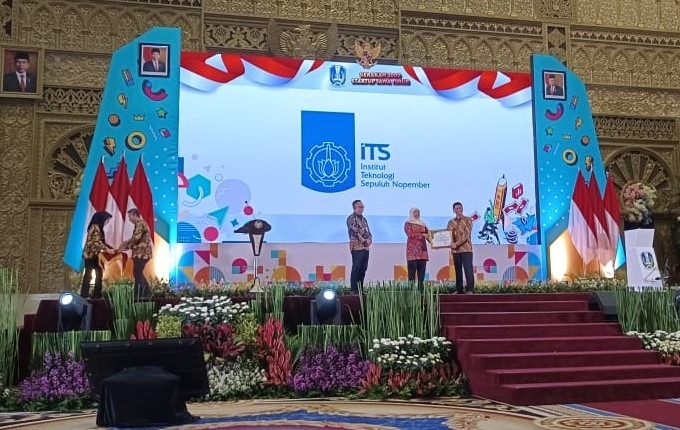 Wakil Rektor IV ITS Bambang Pramujati ST MSc Eng PhD (kanan) saat menerima penghargaan dari Gubernur Jawa Timur Khofifah Indar Parawansa di Graha Unesa Surabaya, ITS News – Institut Teknologi
