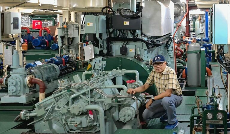 Prof Dr Ir Agoes Santoso MSc MPhil CEng FIMarEST MRINA saat melakukan peninjauan uji fungsi kapal ADRI LIII yang didesainnya bersama tim ITS Kampus ITS, ITS News — Institut Teknologi
