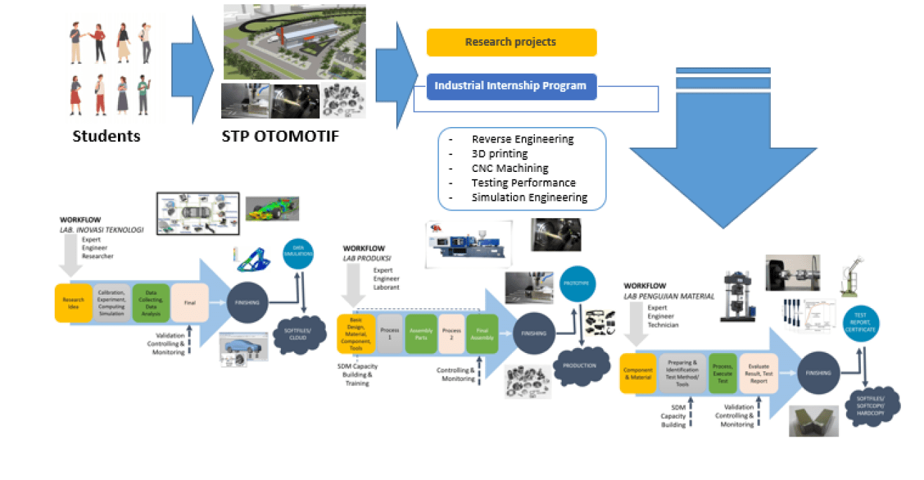 STP Otomotif telah menjalani perjalanan yang mengesankan dalam bidang riset dan inovasi, membangun fondasi yang kokoh melalui kolaborasi yang erat dengan berbagai pihak, termasuk HETI ADB, LOKAL ITS Ristek BRIN, LPDP, Kemendikbud, serta kerjasama yang strategis dengan industri seperti TOYOTA, MAB, dan GMF. Kerjasama dengan HETI ADB, LOKAL ITS Ristek BRIN, dan LPDP menandai komitmen STP Otomotif dalam meningkatkan kapasitas riset dan inovasi. Melalui dana dan dukungan yang diberikan, lembaga ini berhasil mengeksplorasi bidang-bidang penelitian yang kritis dalam industri otomotif. Jika ingin tahu lebih lanjut tentang Riset, Inovasi dan Komersialisai bisa klik selengkapnya dibawah ini.