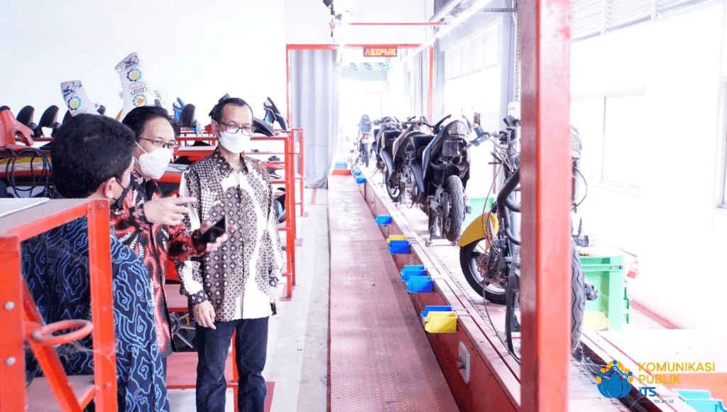 The Director General also visited the GESITS motorcycle teaching industry facility which was used for students to learn about the GESITS motorcycle manufacturing process. In the teaching industry, there are eight process stations which are chassis, steering system, drive train, accessories, two body installation stations, waiting, and lastly function and performance tests station. This teaching industry is designed to produce an electric motor with only a waiting time of about 5 minutes at each station so that the overall production process takes no more than 1 hour through modular assembly mechanism.