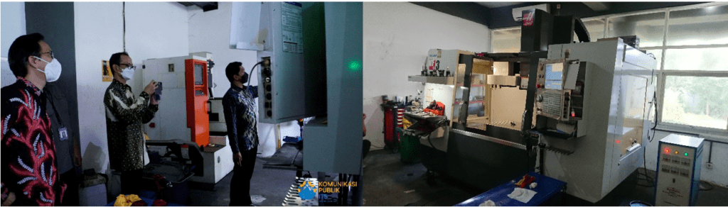 The next facility visited was a CNC machining facility. Here Mr. Nizam was shown two Haas CNC machines with different functions, type VF3 for milling, drilling, and tapering and type ST10 for lathe. These machines are capable of manufacturing various products, such as custom spareparts for electric motors such as casings, rotors, and fins with uncommon size and shape, as well as moldings for the casting process for glass products.