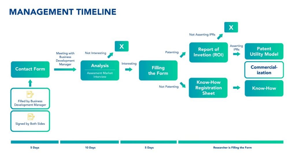 So it becomes clear that universities are responsible for increasing the number of IP that is licensed in an effort to support the improvement of the national economy. It can be understood here that the role of universities began to shift. From the initial functions of education, teaching and community service, now and in the future, a number of roles were added such as: administering research funds from various sources, evaluating and marketing the resulting technology, identifying potential inventions downstream, negotiating licenses from IP owned, entrepreneurship development, incubating start-up / spin-off companies, conducting training related to IP and several other functions. So that the Transfer Technology Office (TTO) or in Indonesian is introduced as the Office of Technology Transfer (KAT) was born to assume the future roles of a tertiary institution. The existence of KAT is very important to oversee the invention of a tertiary institution into an innovation product that is widely used by the community.