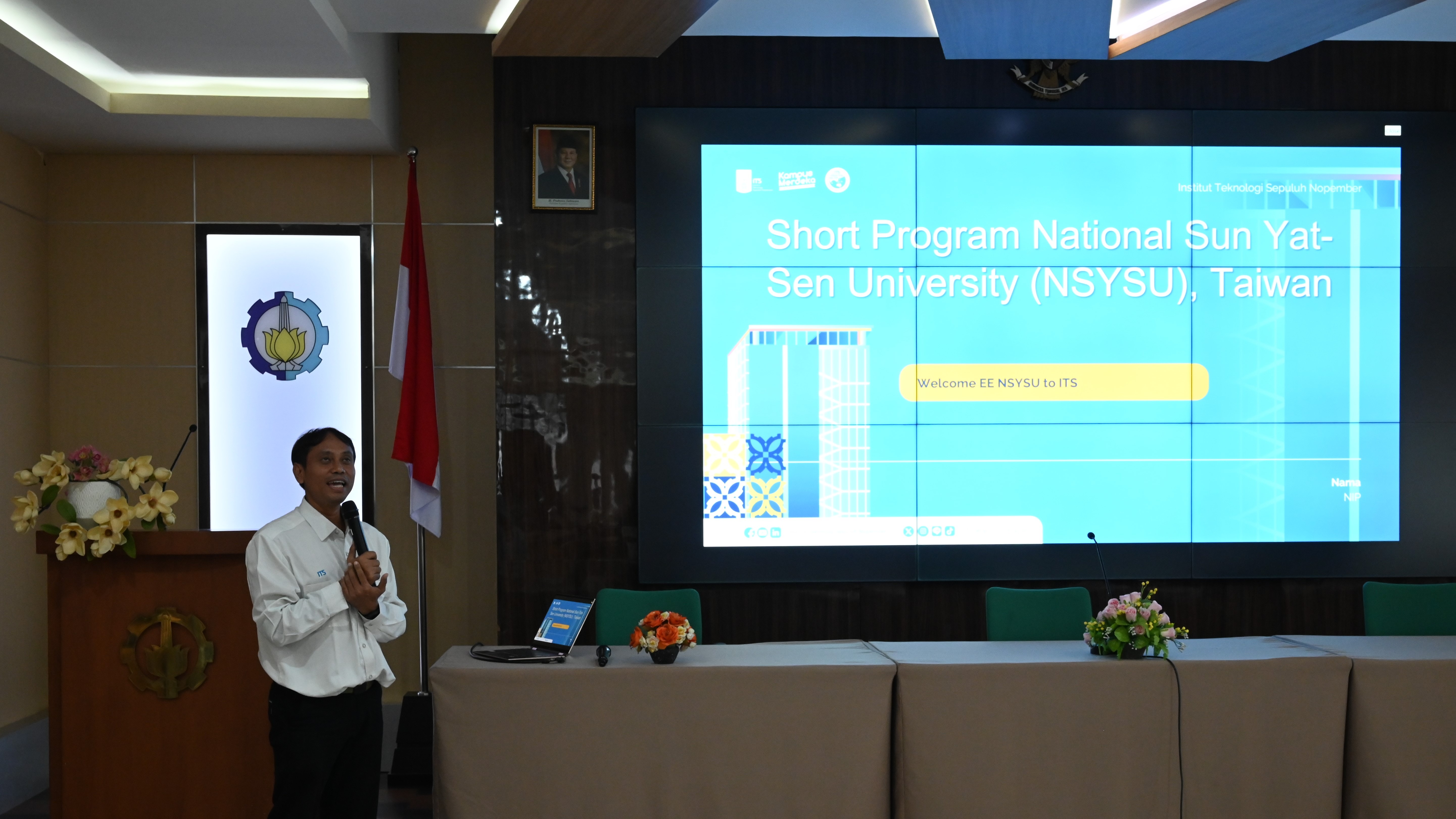 Image: Ronny Mardiyanto, S.T., M.T., Ph.D., Head of the Department of Electrical Engineering ITS, delivering the opening remarks for the Short Program with NSYSU.