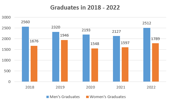 Acknowledging the historically low representation of women in science, technology, engineering, and mathematics (STEM) fields, Institut Teknologi Sepuluh Nopember (ITS) has implemented comprehensive measurement and tracking systems to monitor women’s likelihood of graduating compared to men’s in 2018-2022.