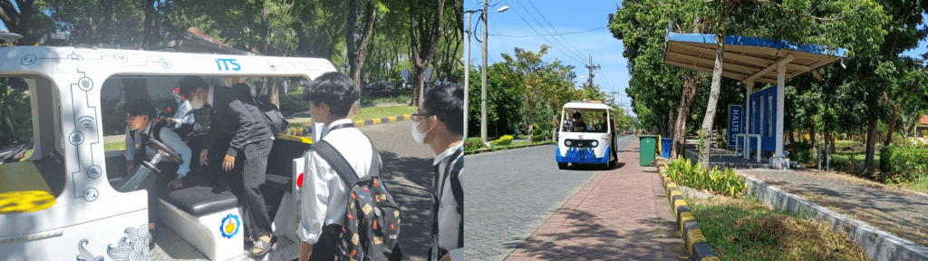 Dalam upaya mengurangi emisi di lingkungan kampus ITS memiliki kendaraan transportasi yang ramah lingkungan yang beroperasi yaitu penyediaan sepeda, sepeda motor listrik, bus listrik buatan ITS serta kendaraan cerdas I-Car.