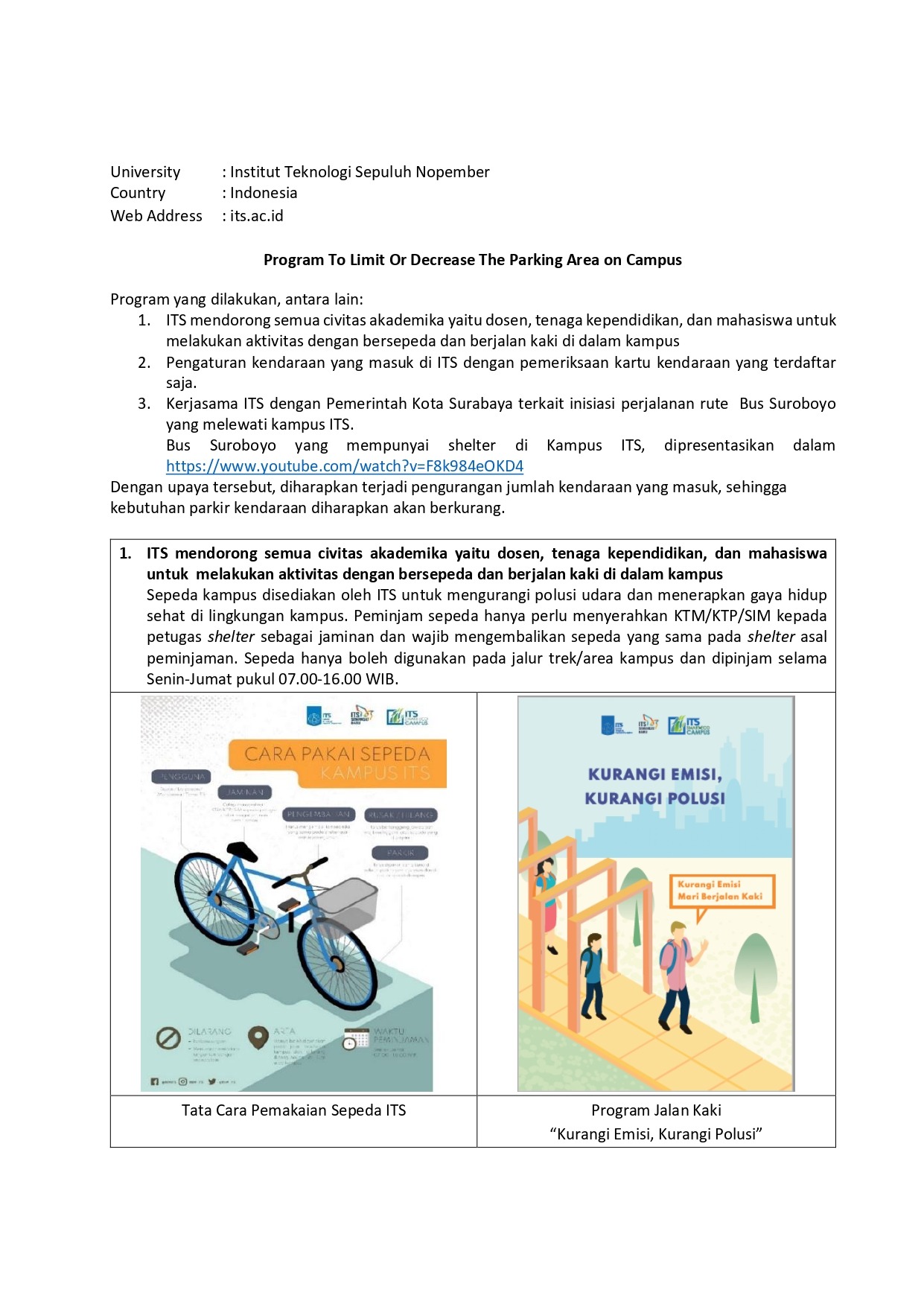 - ITS encourages all academicians, including lecturers, education staff, and students, to participate in campus cycling and walking activities.