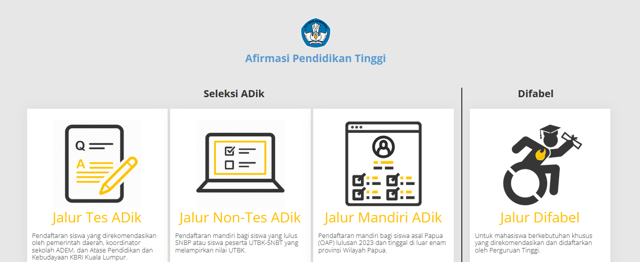 Institut Teknologi Sepuluh Nopember (ITS) has worked with the Ministry of Research and Higher Education (Kemrisetdikti) for over ten years to accept students from disadvantaged areas through ADIK scholarship expressly. The ADIK scholarship is specifically for prospective students from Papua, West Papua, and frontier, outermost, underdeveloped (3T) areas. Scholarship selection for the 3T area will be conducted after the SNBT/SBMPTN with a quota of 20-30 students each year. The ADIK scholarship registration procedure can be accessed at https://adik.kemdikbud.go.id/syarat-dan-ketentuan-adik-2022/