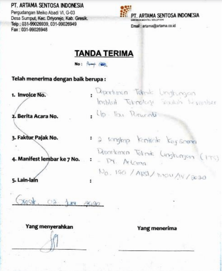 ITS has a policy related to the management of domestic wastewater and laboratory waste. Wastewater from various activities at ITS is treated through the Anaerobic Baffled Reactor (ABR) Wastewater Treatment Plant (IPAL) or a simple waste processing facility using a grease trap and sedimentation pond.