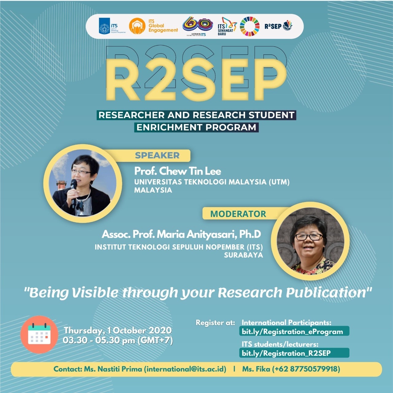 R2SEP is one of ITS’ free e-programs which is a research skills oriented program where ITS researchers and research students can learn from a series of guest lectures delivered by worldwide professors and experts. The program is a platform for students to exchange ideas, catch up with the world’s research trends in particular fields, and for overseas professors to share best practices.
