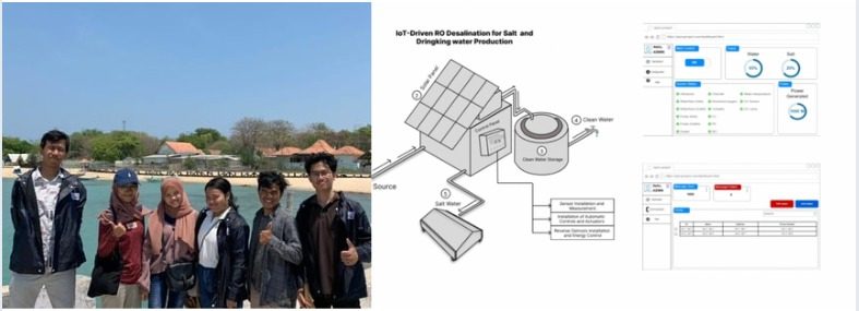 Beyond energy access, ITS also promoted renewable technologies to enhance rural resilience and entrepreneurship. In Gili Genting, students collaborated with the Karya Bahari community to build an IoT-driven photovoltaic reverse osmosis (PV-RO) system that simultaneously produced clean water and salt, showcasing how solar technology can support both environmental and economic sustainability. Another team developed a solar-powered waste crusher, educating waste workers about how renewable energy could improve productivity while lowering costs. In mountainous farming areas, ITS introduced solar feed choppers to ease livestock feed processing, while in Malang’s Sanan Village, cattle manure was converted into eco-friendly biobriquettes—turning waste into clean energy and inspiring residents to adopt circular economy principles.