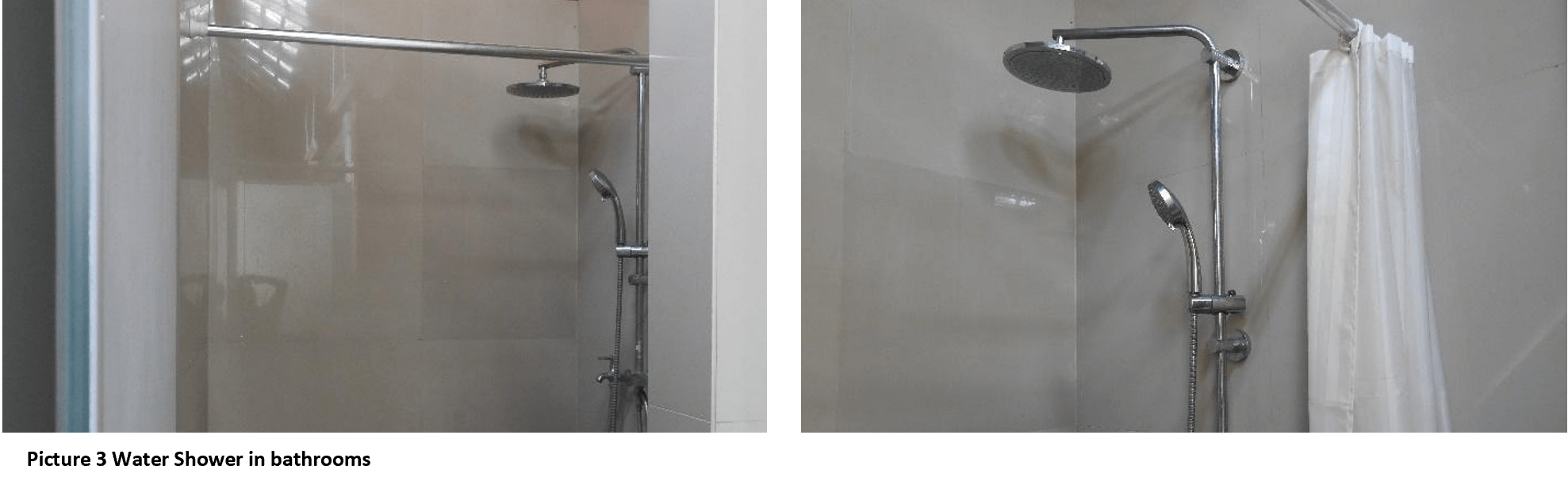 Water pressure is used in showers in an effort to reduce water usage. Modern showerhead designs, including low-flow and aerated models, are engineered to maintain a satisfying shower experience while significantly reducing water usage. During a shower, users can adjust the water pressure. This type of shower is installed in the bathroom of Manarul Ilmi Mosque