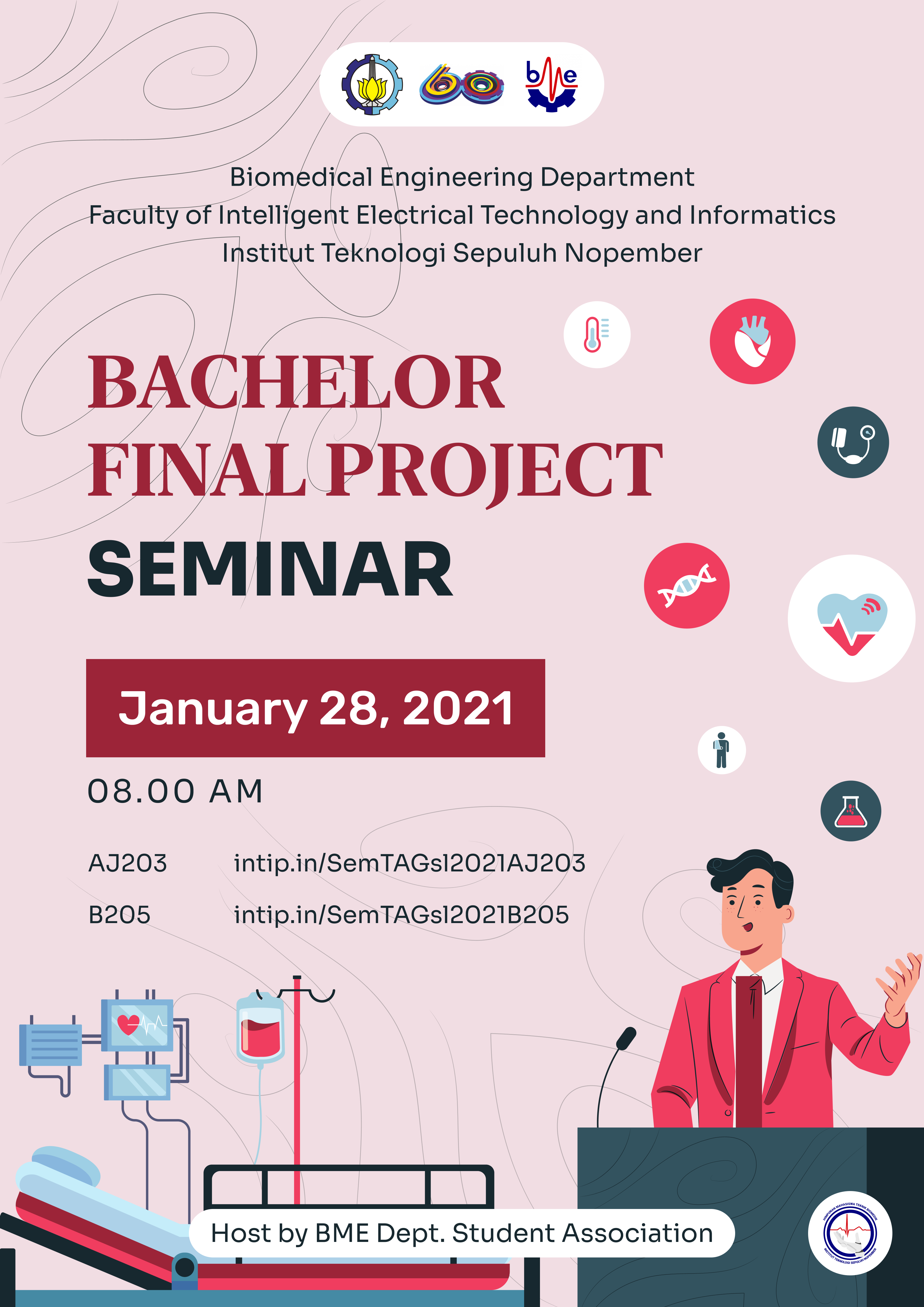 Departemen Teknik Biomedik FTEIC-ITS akan melaksanakan seminar tugas akhir semester gasal tahun ajaran 2020-2021 dengan aganda sebagai berikut :