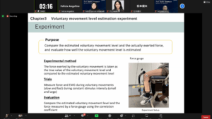 Presentation list: 1.) Ryo Kawashima and Takashi Watanabe A Feasibility Study of Prediction of Lower Limb Segment Inclination Angles under Different Walking Speeds