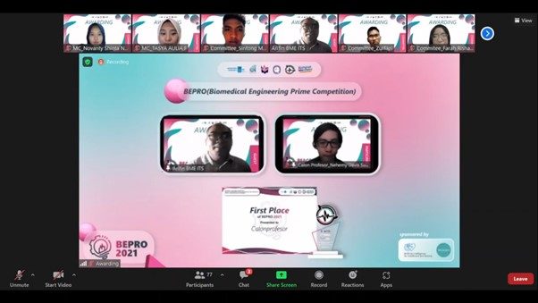 Pada hari Minggu, 5 Desember 2021 Departemen Teknik Biomedik mengadakan Awarding BEPRO 2021. Kegiatan ini berlangsung secara online melalui virtual zoom meeting. Berikut dokumentasi kegiatan Awarding BEPRO 2021 :