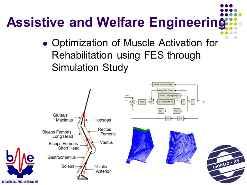 Disain peralatan medis, Pengolahan sinyal dan citra medis, Teknik klinis, Rehabilitasi medis, Teknologi bantuan untuk individu yang berkebutuhan khusus.