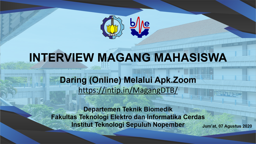Interview magang mahasiswa di Departemen Teknik Biomedik dilaksanakan secara online pada hari Jum’at, 7 Agustus 2020. Berikut ini dokumentasi pelaksanaan interview magang mahasiswa di Departemen Teknik Biomedik :