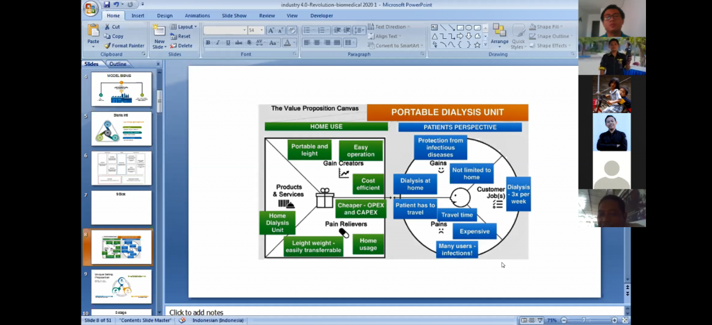 Pada hari Kamis, 26 Maret 2020 Departemen Teknik Biomedik mengadakan kuliah tamu proyek disain secara online. Pemateri kuliah tamu pada proyek disain tersebut adalah Rudy Kurniawan, S.T. dan Aris Budi Santoso, S.T. Berikut ini galeri foto dokumentasi kegiatan kuliah tamu proyek disain di Departemen Teknik Biomedik :