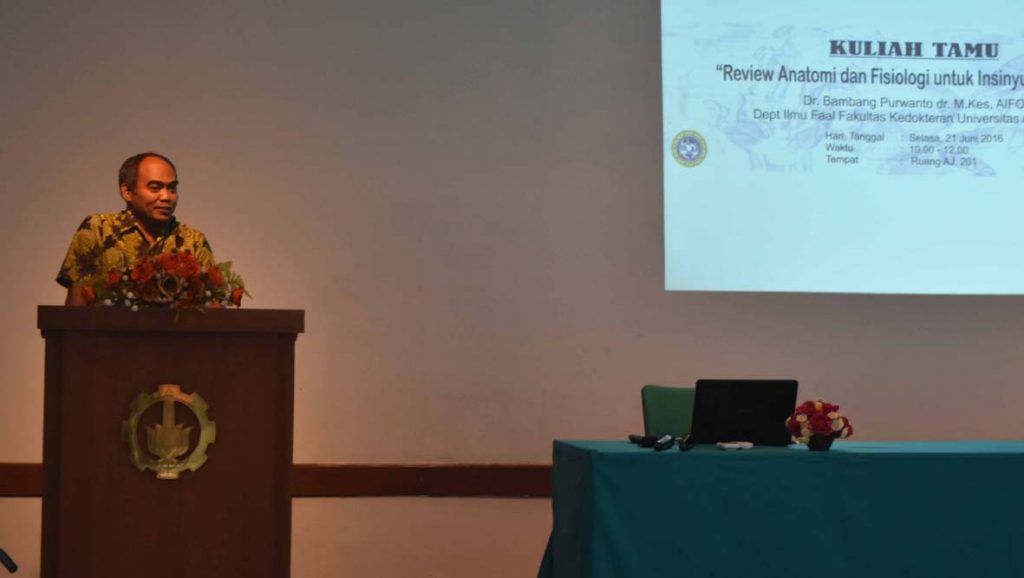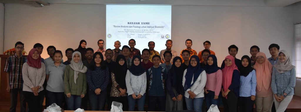 Hari Selasa 21 Juni 2016, Departemen Teknik Biomedik mengadakan kuliah tamu anatomi dan fisiologi yang dibawakan oleh dr. Bambang Purwanto dr. M.Kes. Acara tersebut diselenggarakan di Ruang Aj 201 pukul 10.00 – 12.00. Berikut ini ditampilkan galeri aktfitas kuliah tamu review anatomi dan fisiologi :
