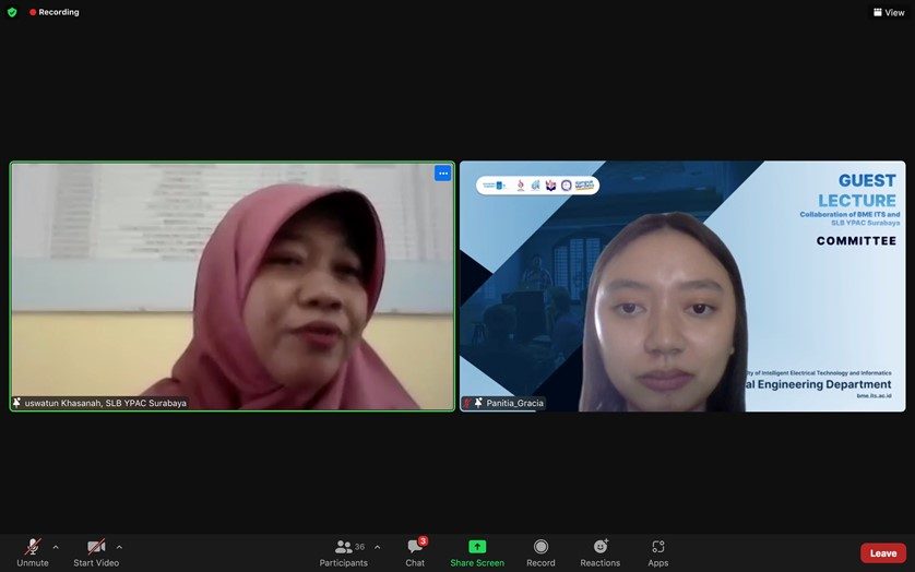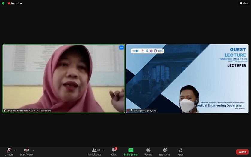 Departemen Teknik Biomedik FTEIC-ITS bekerja sama dengan SLB YPAC Surabaya, telah menyelenggarakan kuliah tamu pada hari Rabu, 9 Maret 2022 pukul 09.00 – 11.15 WIB. Kuliah tamu diisi oleh Ibu Uswatun Khasanah S.Pd., dengan tema “Learning Methods and Technology Engagement for Students with Special Needs Education“. Berikut dokumentasi dari kegiatan yang telah berlangsung.