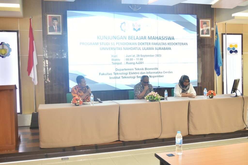 Pada hari Jum’at, 29 September 2023 Departemen Teknik Biomedik menerima Kunjungan Belajar dari Mahasiswa S1 Pendidikan Dokter Fakultas Kedokteran Universitas Nahdatul Ulama Surabaya. Kegiatan ini berlangsung di Ruang AJ201. Berikut ini foto dokumentasi kegiatan Kunjungan Belajar Mahasiswa S1 Pendidikan Dokter Fakultas Kedokteran Universitas Nahdatul Ulama Surabaya di Departemen Teknik Biomedik :