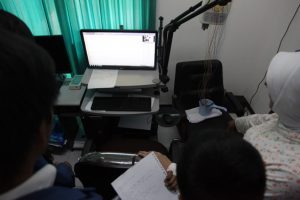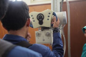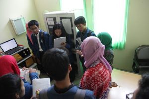 Mahasiswa Teknik Biomedik ITS mengamati peralatan medis yang ada di RSJ Menur, serta mendapat penjelasan dan demo dari tenaga medis yang bertugas.