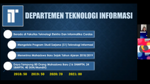 Pada hari sabtu, 13 Februari 2021, Institut Teknologi Sepuluh Nopember mengadakan kegiatan open campus. Kegiatan ini bertujuan untuk mengenalkan lingkungan dan fasilitas kampus ITS kepada siswa/siswi SMA/SMK sederajat di wilayah Surabaya dan sekitarnya. Pada tahun ini kegiatan open campus di ITS dilakukan secara online. Salah satu agenda road show open campus secara online ini adalah mengenalkan Fakultas Teknologi dan Informatika Cerdas. Berikut ini dokumtasi kegiatan open campus di Fakultas Teknologi dan Informatika Cerdas :