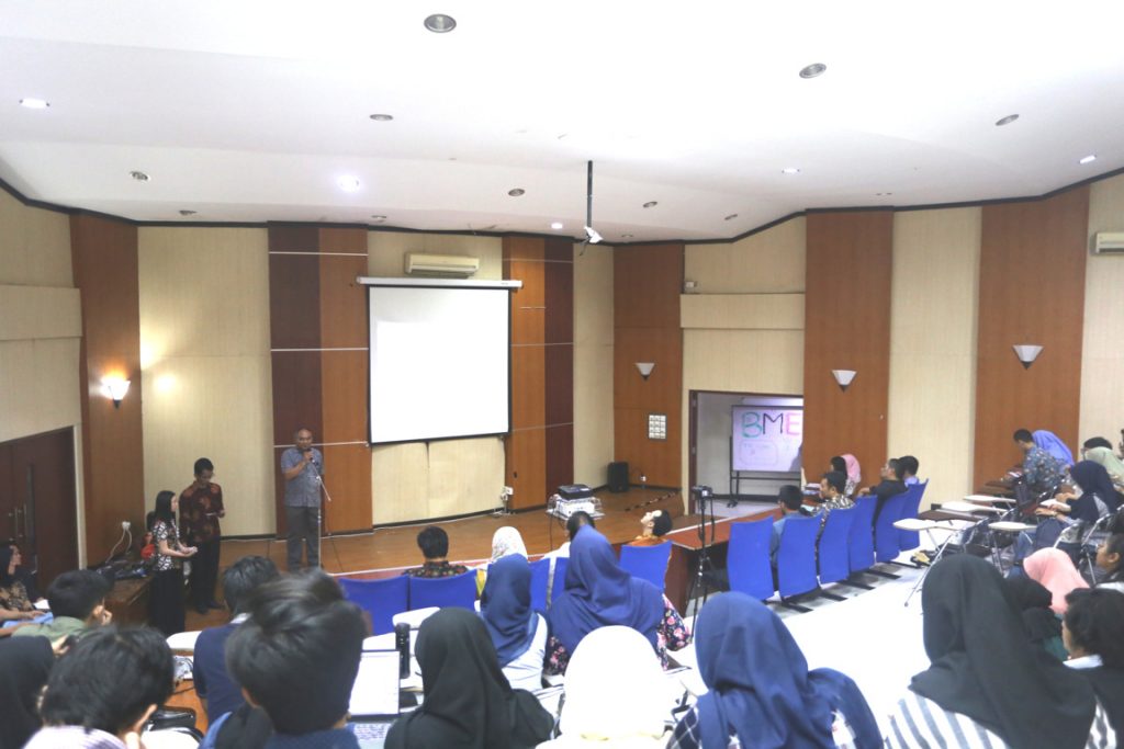 Mahasiswa angkatan 2019 Departemen Teknik Biomedik mengisi sesi hiburan pada kegiatan BME Awards.
