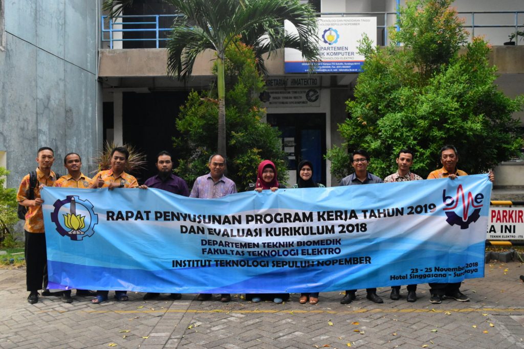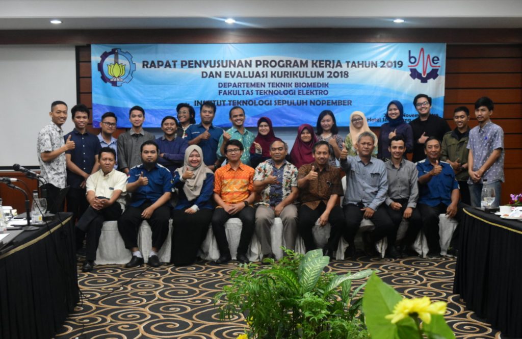 Foto bersama dosen, tenaga kependidikan, dan mahasiswa dalam acara Rapat Penyusunan Program Kerja Tahun 2019 dan Evaluasi Kurikulum 2018 Departemen Teknik Biomedik, FTE-ITS.