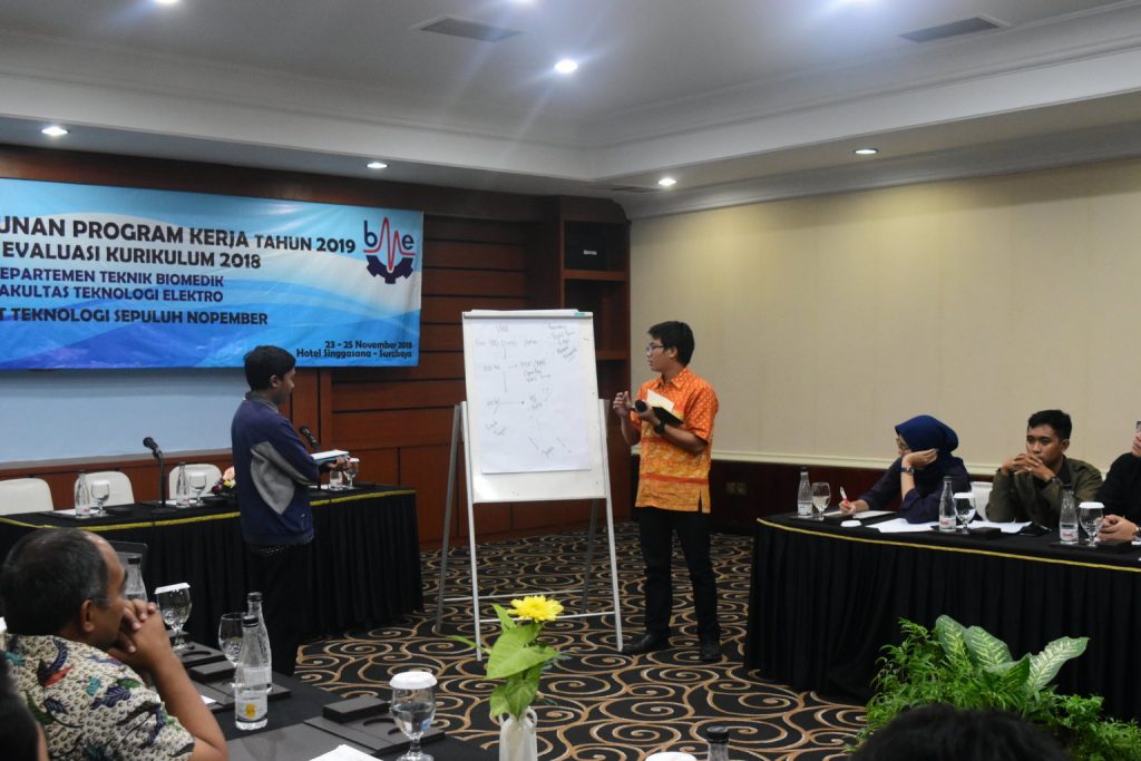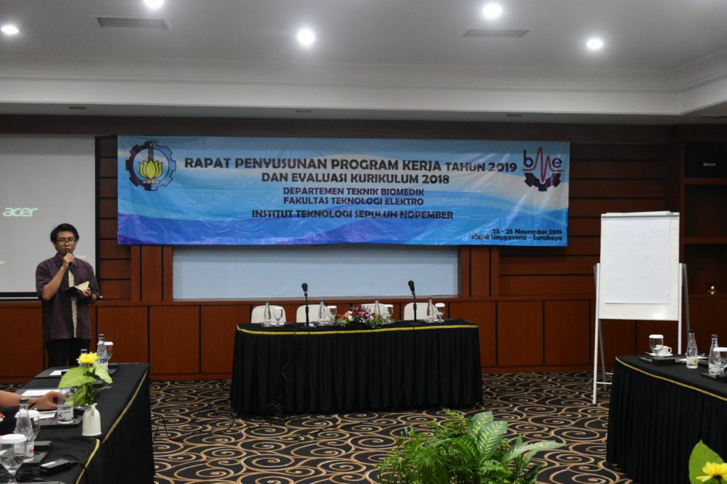 Hilman Fatoni, S.T., M.T. selaku Sekertaris Departemen Teknik Biomedik bertindak sebagai moderator dalam acara rapat penyusunan program kerja tahun 2019 dan evaluasi kurikulum 2018 Departemen Teknik Biomedik, FTE-ITS.