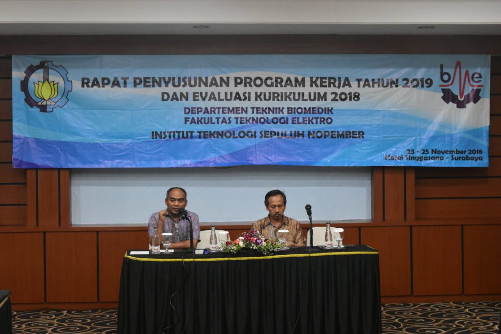 Pembukaan rapat penyusunan program kerja tahun 2019 dan evaluasi kurikulum tahun 2018 Departemen Teknik Biomedik, FTE-ITS oleh Dr. Tri Arief Sardjono, S.T. M.T dan Dr. Achmad Arifin, S.T., M.Eng.