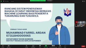 Pada hari Rabu dan Kamis, 28-29 Desember 2022 Departemen Teknik Biomedik menyelenggarakan Seminar Tugas Akhir Semester Gasal 2022-2023. Kegiatan ini berlangsung secara offline di ruang A110 & A111 dan online melalui apk zoom. Berikut dokumentasi pelaksanaan Seminar Tugas Akhir di Departemen Teknik Biomedik :
