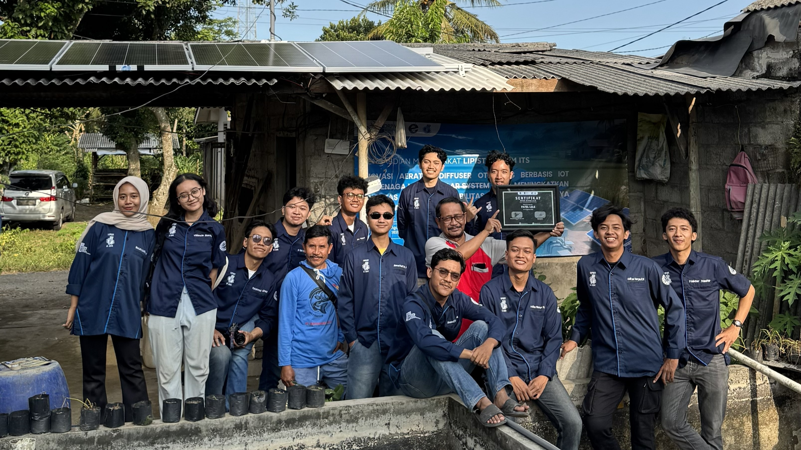Surabaya, FT-EIC ITS – Kegiatan pengabdian masyarakat (ABMAS) telah menjadi bagian dari tradisi di Laboratorium Instrumentasi Pengukuran dan Identifikasi Sistem Tenaga (LIPIST), Departemen Teknik Elektro, Fakultas Teknologi Elektro dan Informatika Cerdas (FT-EIC) Institut Teknologi Sepuluh Nopember (ITS). Tahun ini, tim Kuliah Kerja Nyata (KKN) ABMAS dari laboratorium tersebut kembali berinovasi lewat proyek aerator cerdas berbasis Internet of Things (IoT) untuk membantu peternak lele di Desa Wringinrejo, Banyuwangi.