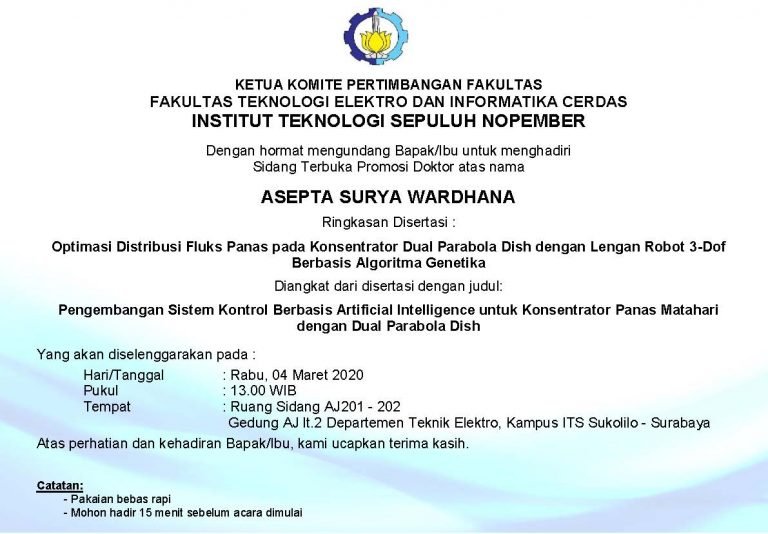 SIDANG TERBUKA PROMOSI DOKTOR ASEPTA SURYA WARDHANA 07111560010001 Ringkasan Disertasi : OPTIMASI DISTRIBUSI FLUKS