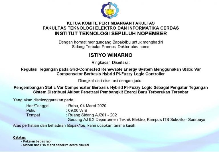 SIDANG TERBUKA PROMOSI DOKTOR ISTIYO WINARNO 07111360010011 Ringkasan Disertasi : REGULASI TEGANGAN PADA GRID-CONNECTED