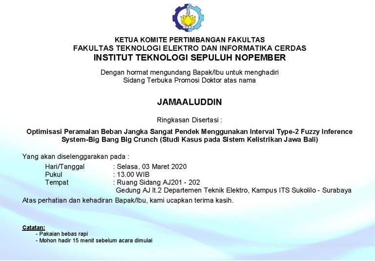 SIDANG TERBUKA PROMOSI DOKTOR JAMAALUDDIN 07111560010006 Ringkasan Disertasi : OPTIMISASI PERAMALAN BEBAN JANGKA SANGAT