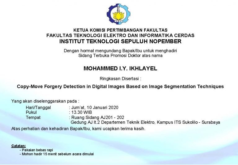 SIDANG TERBUKA PROMOSI DOKTOR MOHAMMED I.Y. IKHLAYEL 07111660010017 Ringkasan Disertasi : COPY-MOVE FORGERY DETECTION