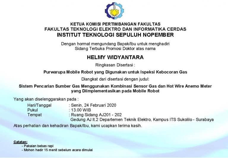 SIDANG TERBUKA PROMOSI DOKTOR HELMY WIDYANTARA 07111060010014 Ringkasan Disertasi : PURWARUPA MOBILE ROBOT YANG