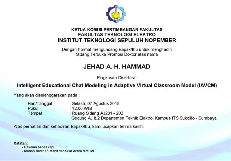 SIDANG TERBUKA PROMOSI DOKTOR JEHAD A. H. HAMMAD 07111560017001 Ringkasan Disertasi : INTELLIGENT EDUCATIONAL