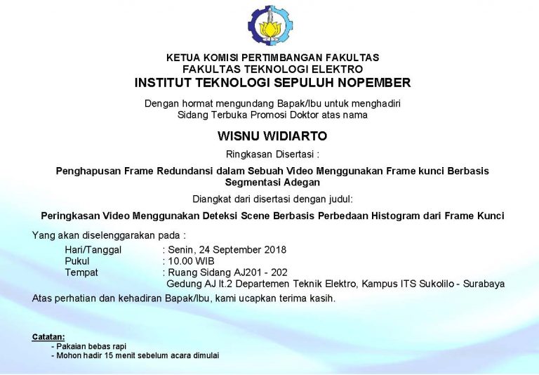 SIDANG TERBUKA PROMOSI DOKTOR WISNU WIDIARTO 07111360010009 Ringkasan Disertasi : Penghapusan Frame Redundansi dalam