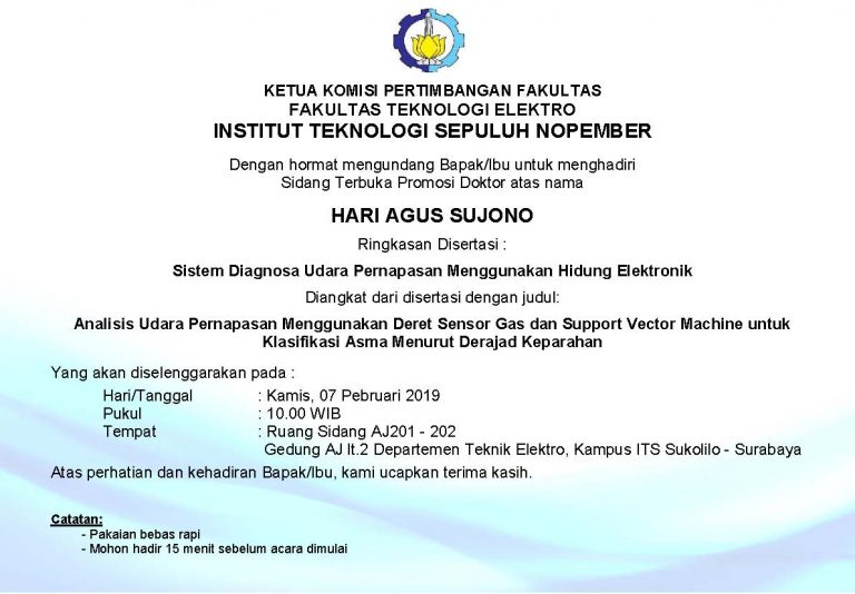 SIDANG TERBUKA PROMOSI DOKTOR HARI AGUS SUJONO 07110960010011 Ringkasan Disertasi : SISTEM DIAGNOSA UDARA