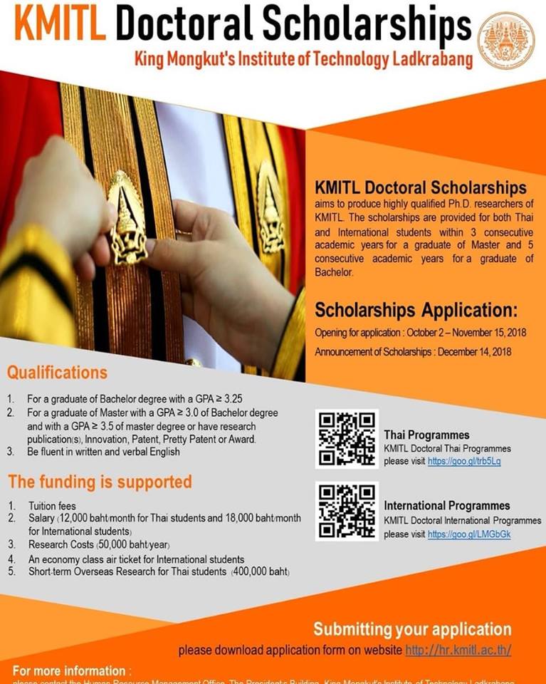 Bagi yg berminat ada beasiswa dari KMITL doctoral scholarships