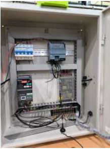 - Kontrol motor 3 fasa (arah CW/CCW dan kecepatan) melalui PLC dan HMI - Antarmuka HMI untuk input dan monitoring - Komunikasi data menggunakan protokol MQTT - Penyimpanan dan pemantauan data pada database MySQL - Fitur keamanan termasuk penggunaan emergency button - Integrasi dengan teknologi IoT dan potensi pengembangan multi-PLC