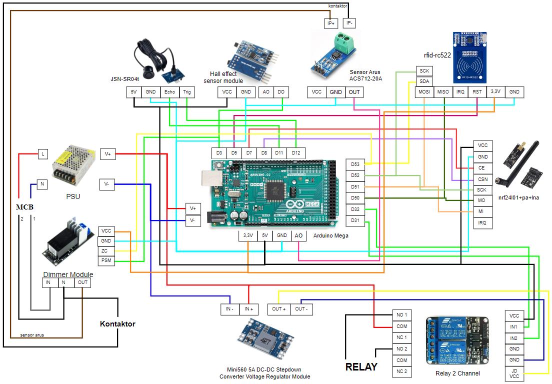 -Motor Induksi Satu Fasa -Mikrokontroler: Arduino Mega 2560 -Komponen Pengendali: TRIAC, AC Dimmer Module -Sensor Arus: ACS712 -Sensor Jarak: JSN–SR04T -RFID Module: RC522 -Zero Crossing Detector -Metode Tuning PI: Ziegler-Nichols + Fine Tuning -Nilai Kp = 27 dan Ki = 0.0007