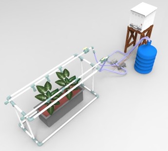 -Sistem terdiri dari: PLC Haiwell sebagai pengendali utama, Sensor kelembapan tanah kapasitif waterproof, Pompa air 12V DP-52, Driver motor BTS7960, HMI Weintek MT8017E untuk antarmuka pengguna, Voltage to PWM converter untuk pengaturan pompa. -Parameter kontrol PI: Kp = 1, Ki = 1 -Karakteristik respons sistem: Rise Time 0,63 s, Peak Time 1 s, Settling Time 27 s, Overshoot 7%, Steady-state error 0,7%
